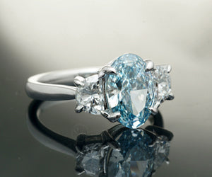 Radiant Cut Blue Diamond Half Moon Three Stone Ring (2.56ct. tw.)