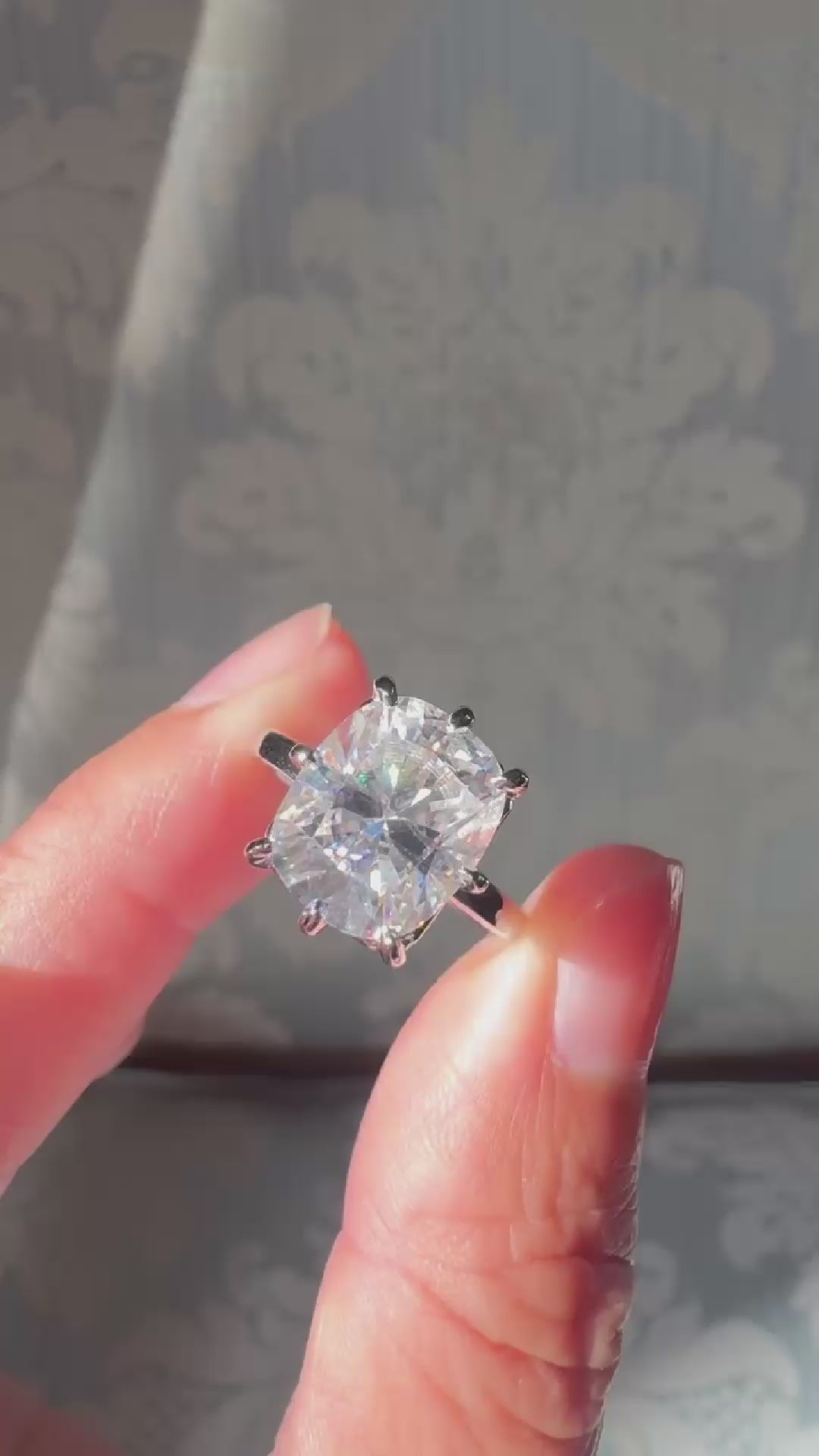 Cushion Moissanite Ring Six Prongs Solitaire (11x9mm)