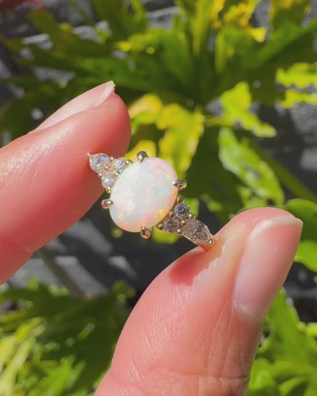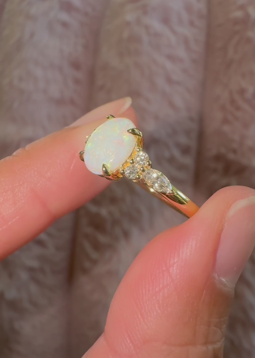 Opal And Marquise Diamond Three Stone Ring In 18k Yellow Gold