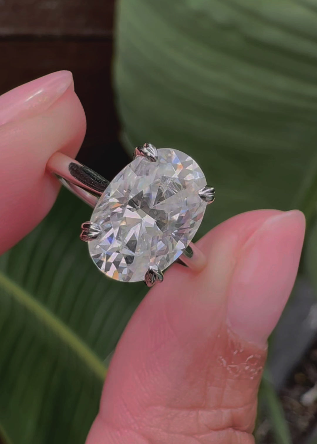 Oval Moissanite Ring 11x7.5mm 18k white Gold - The Emily Solitaire