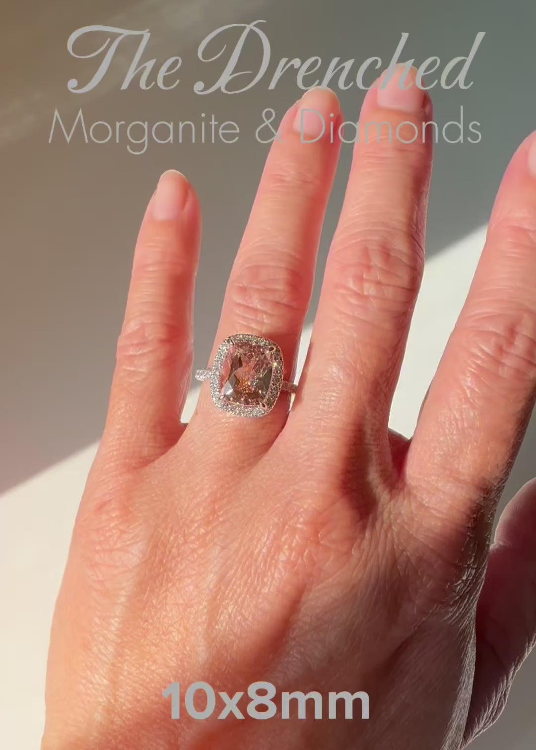 The Drenched Cushion Morganite Ring 18k White Gold 10x8mm