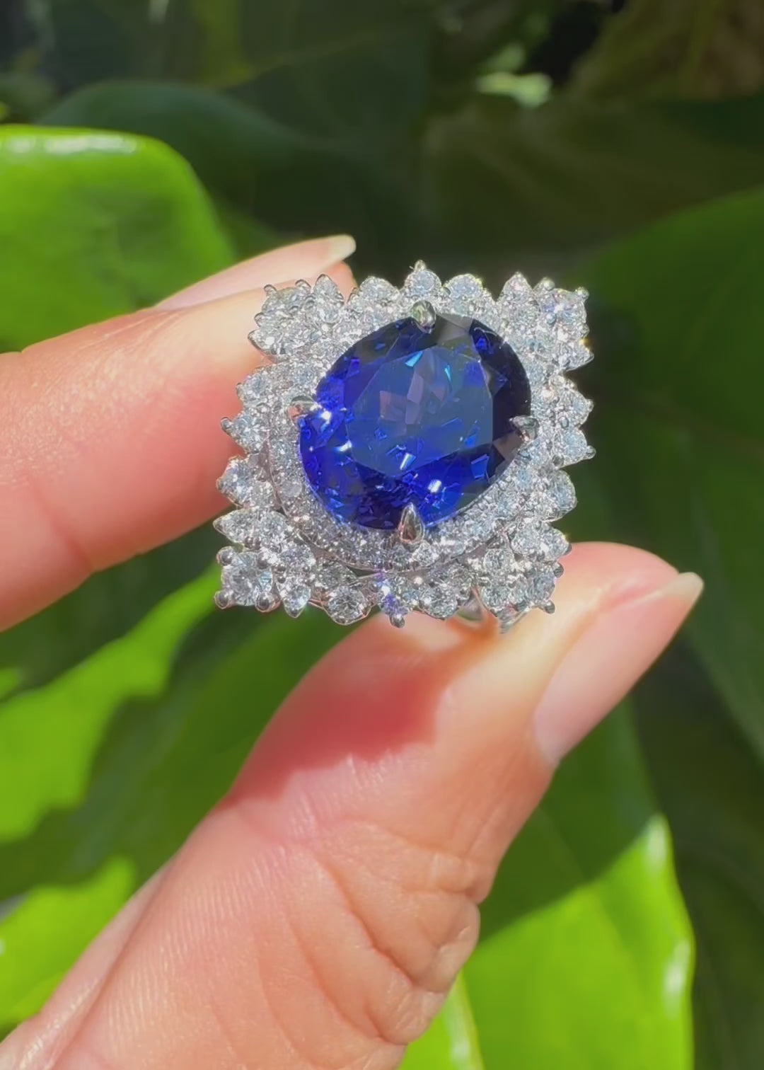 The Kate's Blue Sapphire Diamond Halo Ring 18k White Gold 5.09ct. tw.